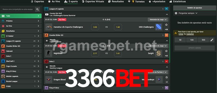 O 3366Bet oferece uma grande seleção de opções de apostas em e-sports com probabilidades competitivas